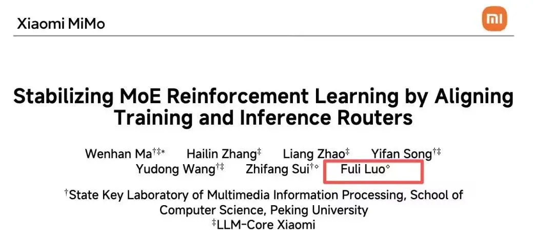 值得一提的是,小米与北京大学联合发表的论文在今年10月登上arXiv平台时,罗福莉就已位列该论文的通讯作者名单之中。