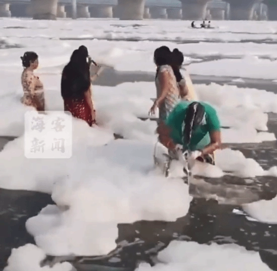 据印度媒体报道,印度首都新德里出现了严重的空气与水污染问题。恒河的第二大支流亚穆纳河的河面被大量白色有毒泡沫所覆盖。