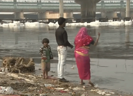 尽管河流污染问题十分严峻,在刚刚落幕的印度传统节日“排灯节”期间,依旧有大量印度民众前往河中沐浴。