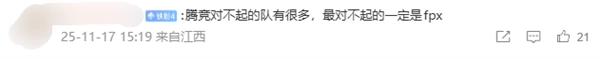 关于FPX离开LPL一事,有网友评论道:“巴黎人看到消息瞬间破防,感觉青春就此画上了句号。”“腾竞亏欠的队伍不在少数,但FPX绝对是最让人心疼的那一个。”“当初取消升降级制度,现在看来真是最大的失误。”