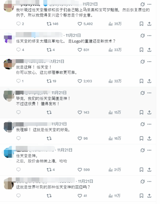 虽然不确定任天堂是更换了备用外壳,还是通过技术手段复原了Logo,但评论区里不少网友都对其服务态度称赞有加。还有网友提及,任天堂在维修设备时,甚至会把孩子贴在机身上的贴纸小心复位,这份认真负责的态度确实十分走心。