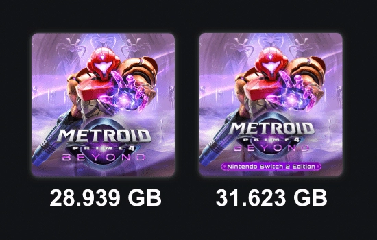 除此之外,还有一位博主@Nintendeal提到Switch版本的文件大小为28GB,Switch 2版本则是31GB,并且销售平台dekudeals也对游戏的实际文件大小进行了证实。