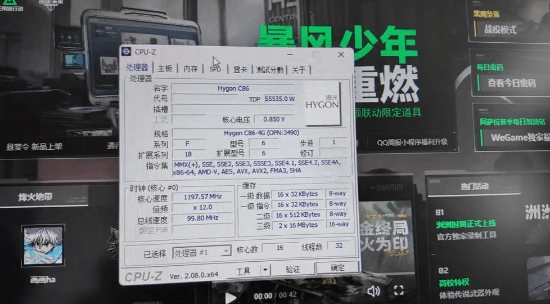 根据CPU-Z的检测信息,这款设备所搭载的处理器型号为Hygon C86-4G,其OPN编号为3490。