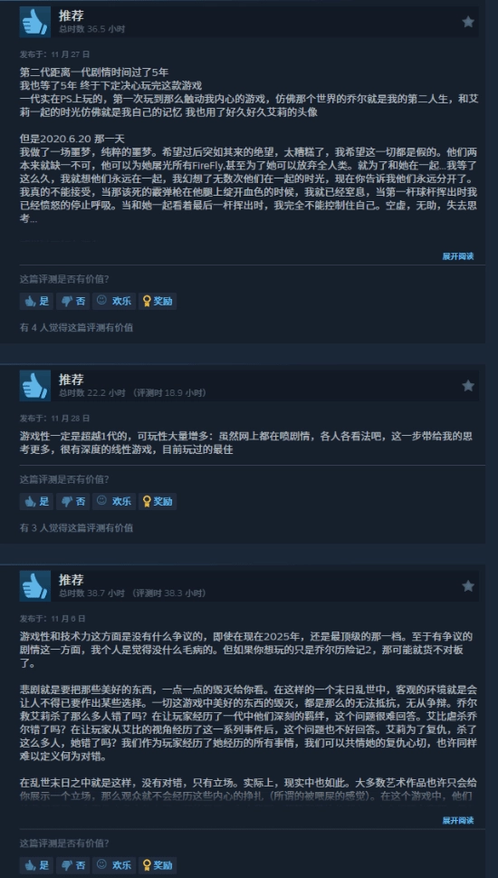 作为顽皮狗工作室旗下经典IP续作的重制版,这款游戏自2025年4月在Steam平台上线后,就以出色的技术优化和完整的内容呈现赢得了玩家关注。到目前为止,游戏已积累了近三千条简体中文玩家评测,整体好评率保持在78%,近30天的好评率更是上升到了95%。