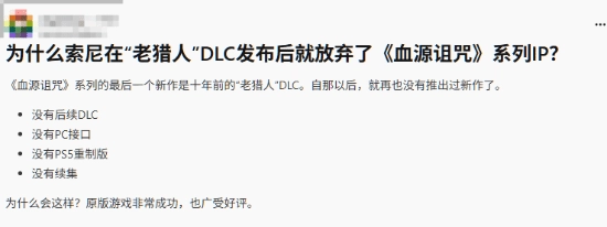 随着“老猎人”迎来发售十周年,近日有玩家在Reddit论坛发帖询问,为何《血源》这一IP会停滞长达十年时间?