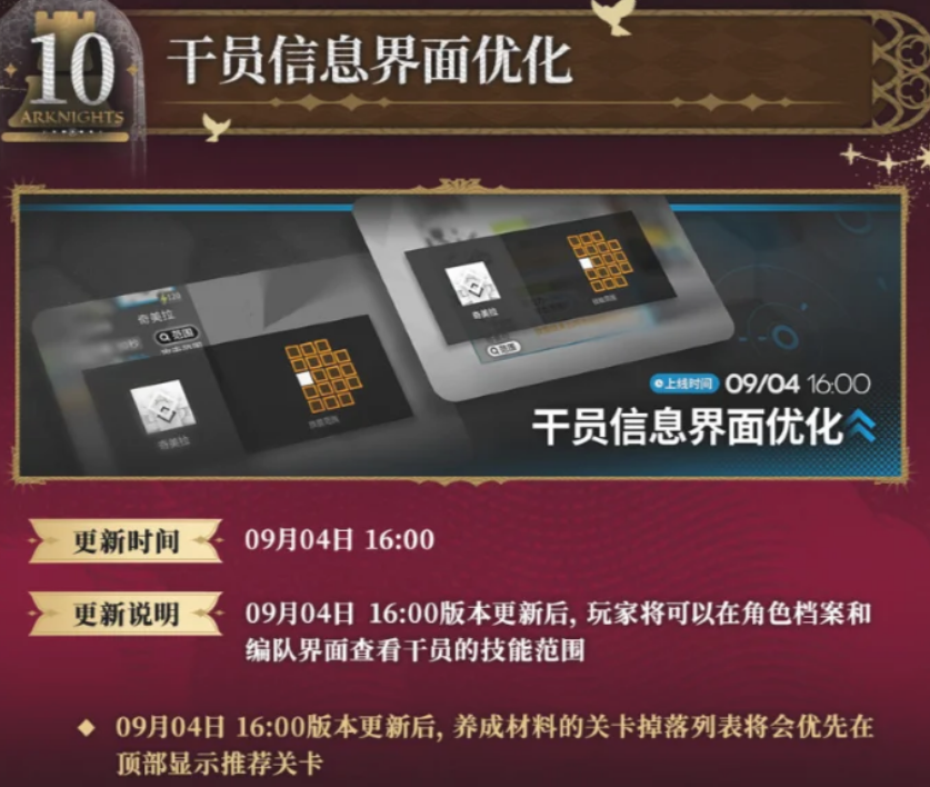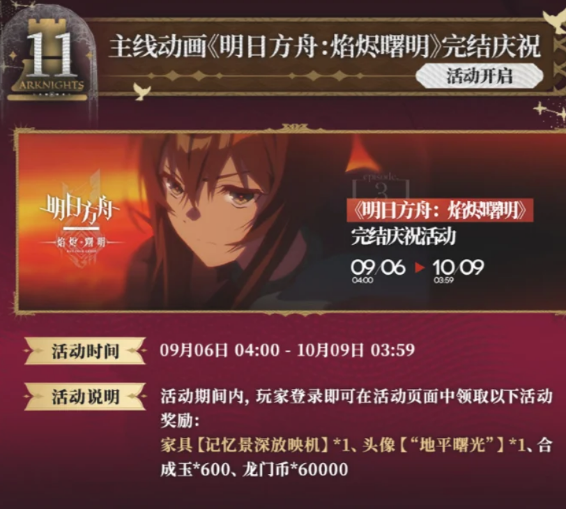时间09月04日 16:00 - 09月18日 03:59活动说明活动期间内,玩家累计活动签到10日可获得【堕梦歌谣寻访凭证】×2、活动头像、合成玉等活动奖励。注意事项【堕梦歌谣寻访凭证】仅可用于【梦中舞会人偶寻访】寻访中进行一次十连寻访【堕梦歌谣寻访凭证】过期时间为:2025年09月18日03:59本次签到活动中领取的“应急理智浓缩液”到期时间请以游戏内显示为准