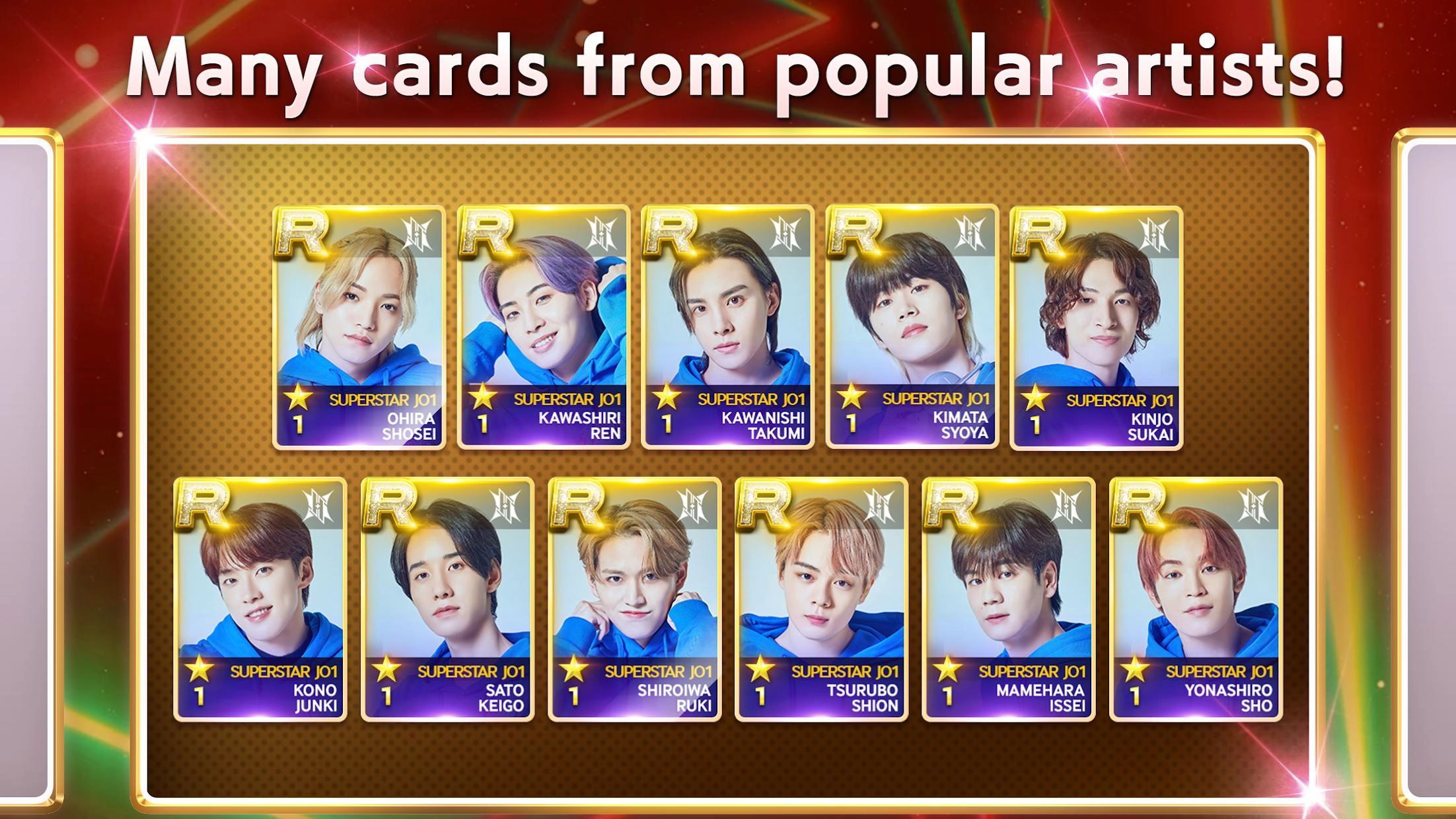 参与的艺术家阵容涵盖JO1与INI,他们的音乐作品将为你打造热血沸腾的游戏体验。这款游戏是完全免费的,能让你毫无顾虑地沉浸在游戏的乐趣里。当然,游戏内也设置了部分付费道具供玩家挑选,你可以依据自身需求决定是否购买。现在就来加入我们吧,《SUPERSTAR LAPONE》会为你带来前所未有的音乐游戏体验!在音乐的节奏里尽情释放热情,在卡牌的收集过程中收获快乐,让我们一同在这个满是音乐与梦想的世界里书写独属于自己的传奇篇章!赶紧加入游戏,和来自全球的玩家们一起感受音乐的独特魅力吧!