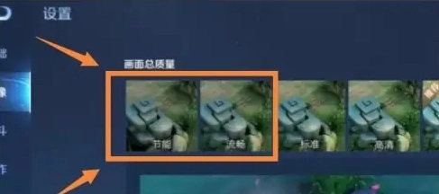 3.在此处把【帧率】显示选项调整为节能模式,接着在下方将【画面总质量】设置为标准档位,完成这样的配置后,能够显著改善苹果13手机运行王者荣耀时出现的卡顿状况。